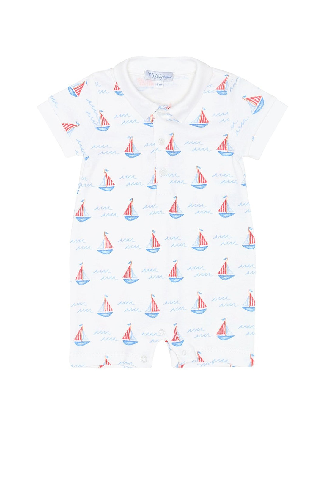 Nellapima White Sailboat Print Boys Romper