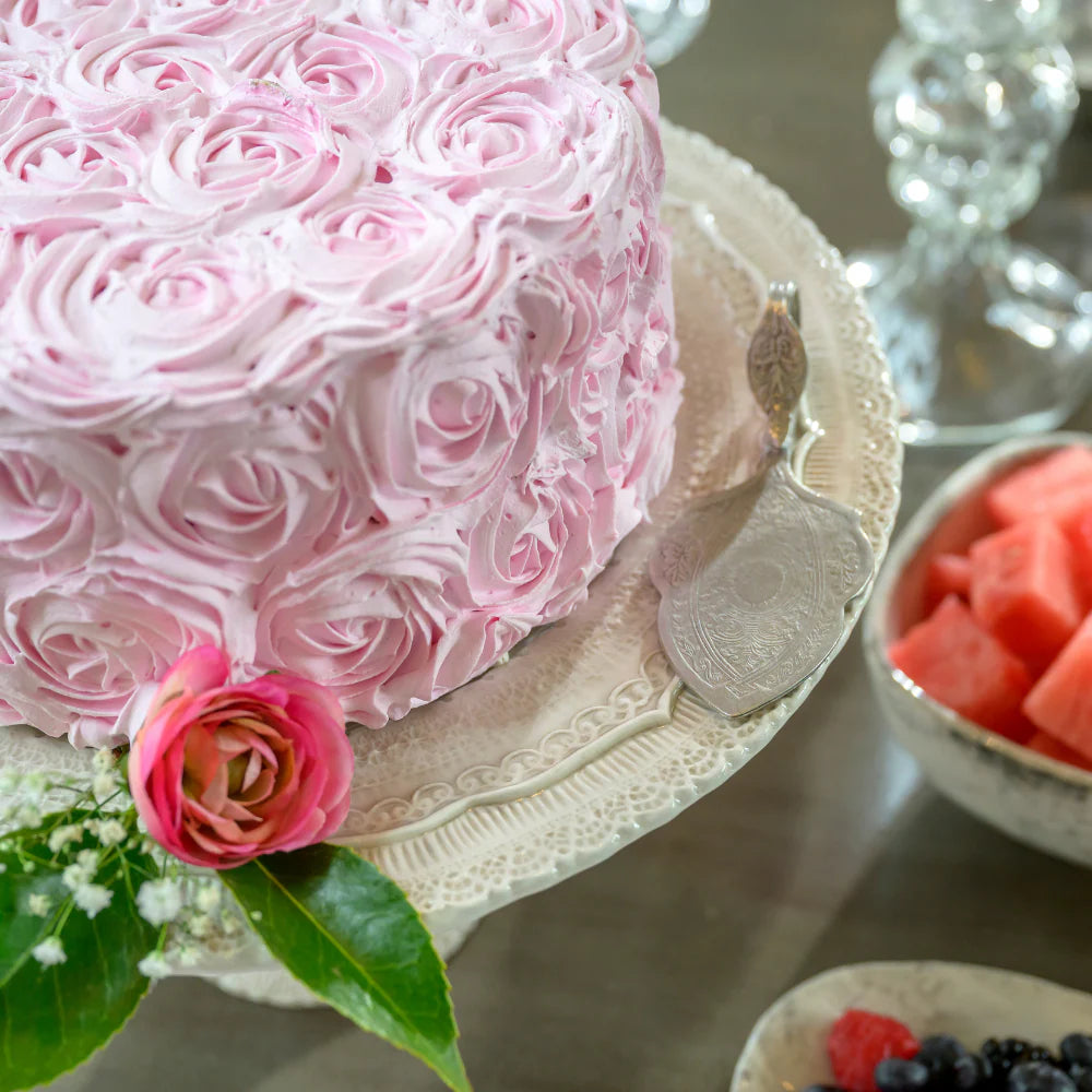 A charming nod to old-world entertaining, this Vintage Mini Cake Server brings elegance to even the smallest moments. Crafted in Italy from pewter, its delicately engraved design evokes heirloom character and timeless European style.