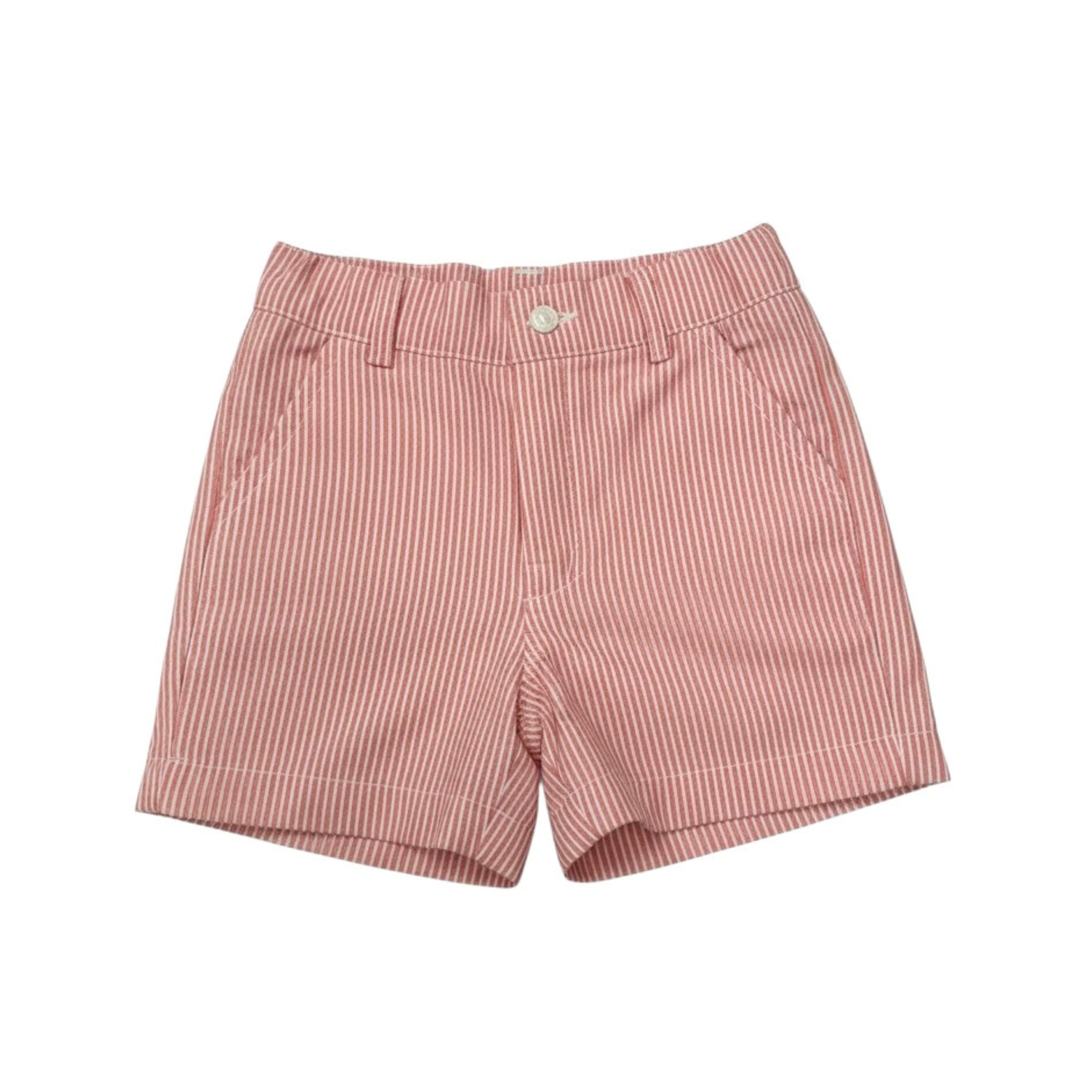 Classic and effortlessly polished, the Pukatuka Classic Red Stripe Boys Shorts bring timeless European style to a young gentleman’s wardrobe. Made from breathable 100% cotton, these tailored shorts feature a red and white stripe pattern that feels both crisp and playful for warm-weather dressing.